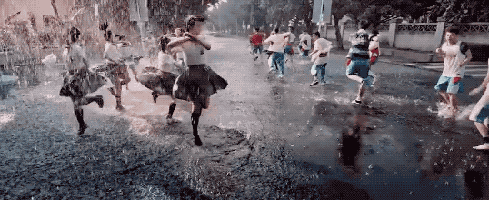 電影裏還有一場雨中戰舞,那是整部電影的轉折部分,少有的帶着一點憤怒的狀態。正好拍攝這場戲的時候碰上了海口罕見的低温天氣,所有主演全部淋着水完成這場舞蹈,冷到極限時,大家豁出去,不拍攝時也在身上澆水,讓體温保持連貫,編舞指導宮崎綾因為疫情,人在日本遠程調教,看到這樣的場面,鹽水從瞳孔裏嘩啦啦了一臉。