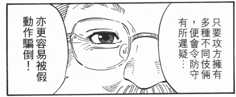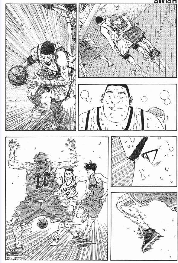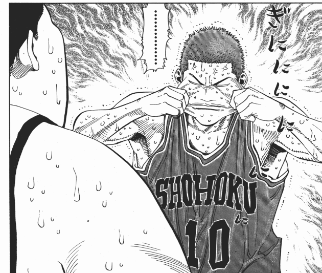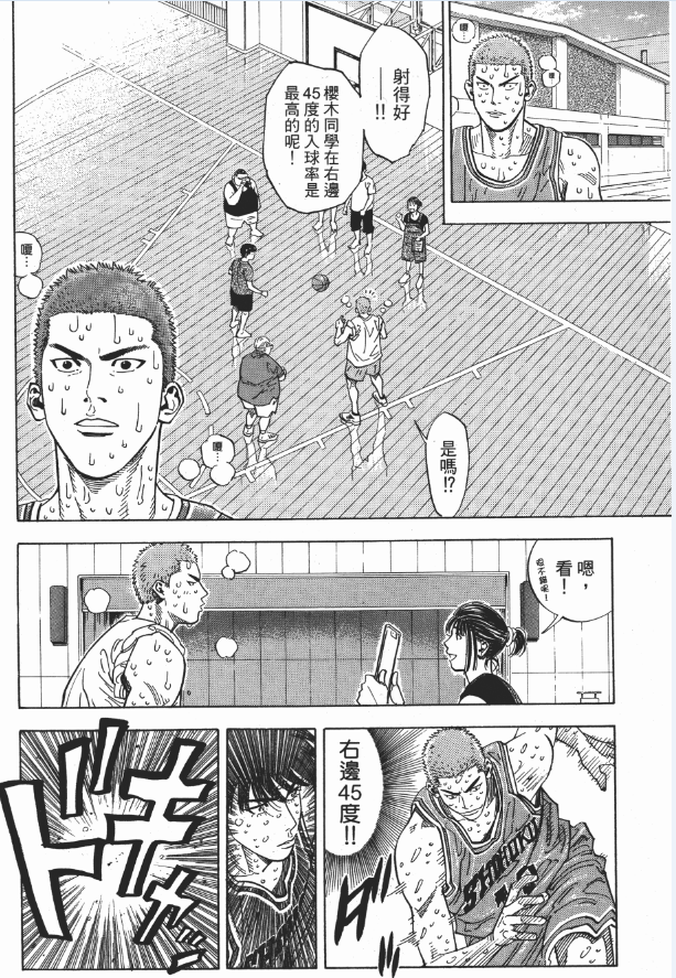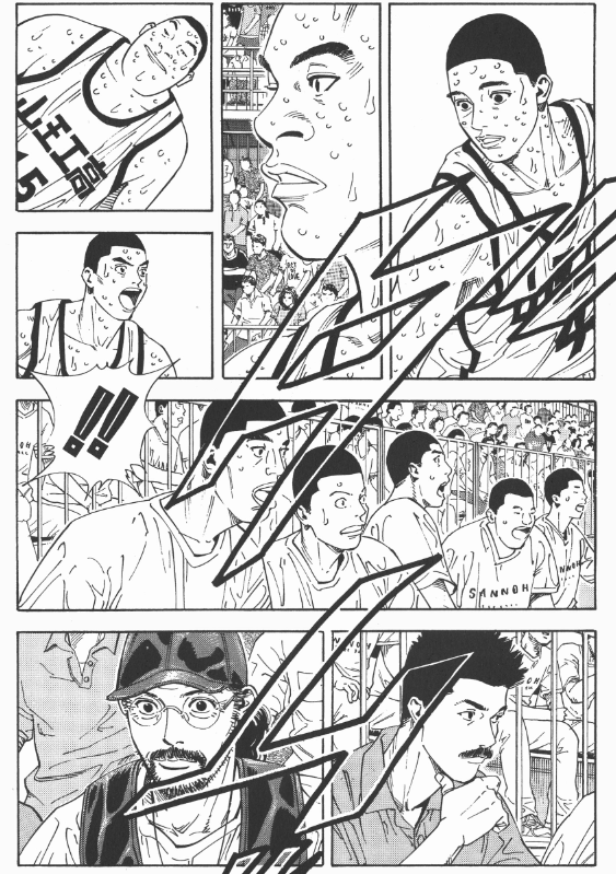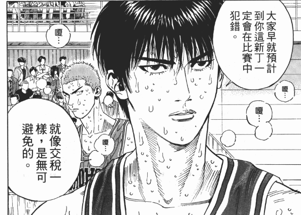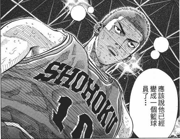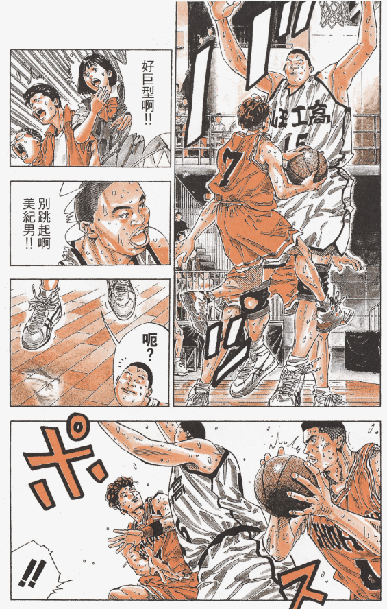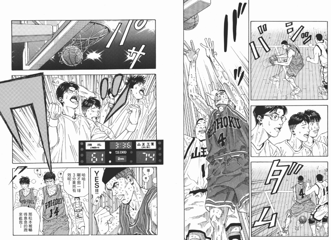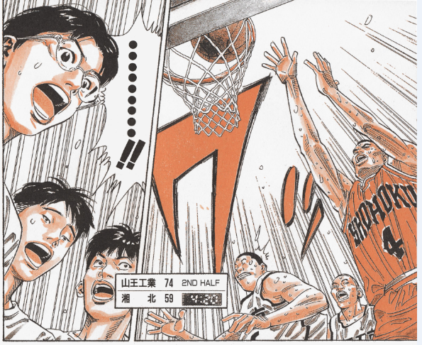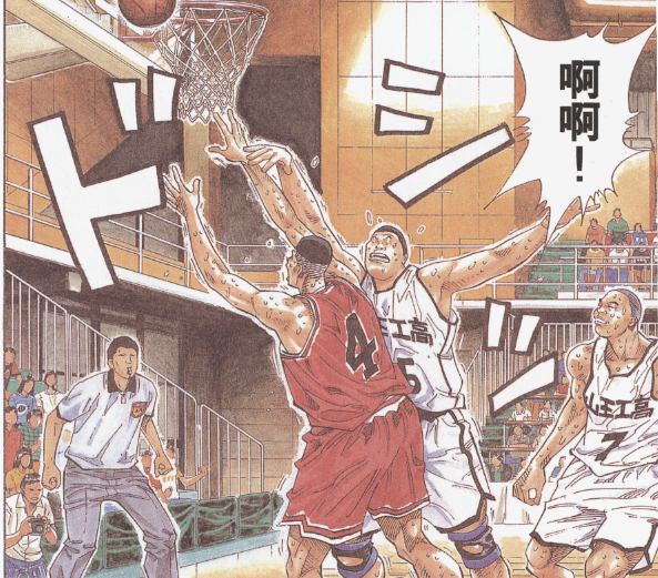 這張圖裏,每個人的表情,跟櫻木的錯誤判斷一起,證明了流川的佈局迷惑性有多大——山王方面,大概只有堂本一人是鎮定的,其他人都沒想到。