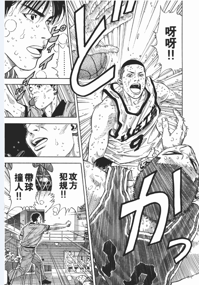 結果,櫻木出現在了他之前擋住流川突破路線的位置,造了澤北進攻犯規。