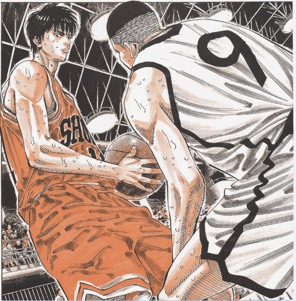 比賽繼續。被流川連續戲耍,特別是剛才被流川“一對一”形成了擺脱,對澤北來説,這是他從小到大的一對一單挑籃球哲學中,最不能接受的故事橋段,所以下個回合,他要用相同的方式回敬流川楓。