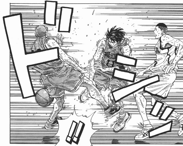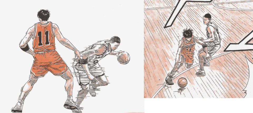 井上設計這個回合的另一個目的是,從櫻木的視角讓讀者們信服,流川佈局的欺騙性有多強——他要騙過經驗豐富的澤北,就必須先騙過其他所有人,這其中自然也包括自己的隊友。櫻木以為流川會繼續傳球,所以站錯了位置,換句話説,櫻木被流川給晃了。
