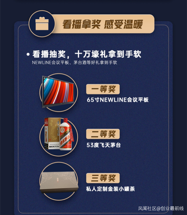 直播時間是7月20日中午11:30-13:00,在兩位大咖會帶來乾貨滿滿的分享的同時,參與直播間互動,還可以抽獎抽取53度飛天茅台、65寸NewLine 會議平板等禮物。