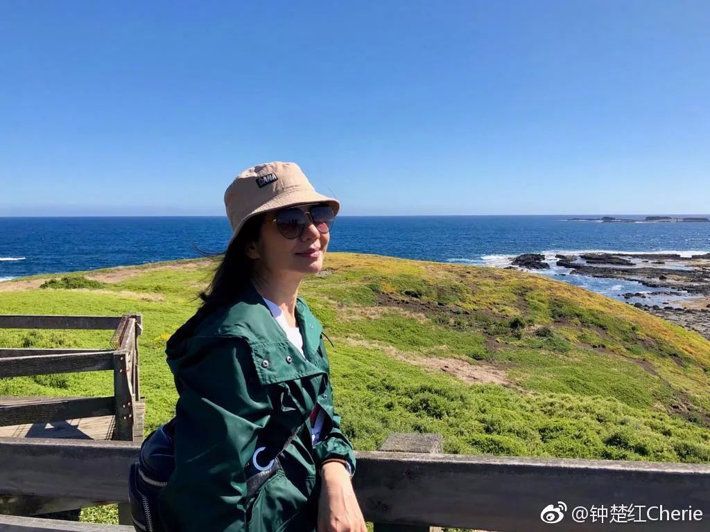 照片中的鐘楚紅,一身簡單的打扮,對着陽光恣意地笑着。