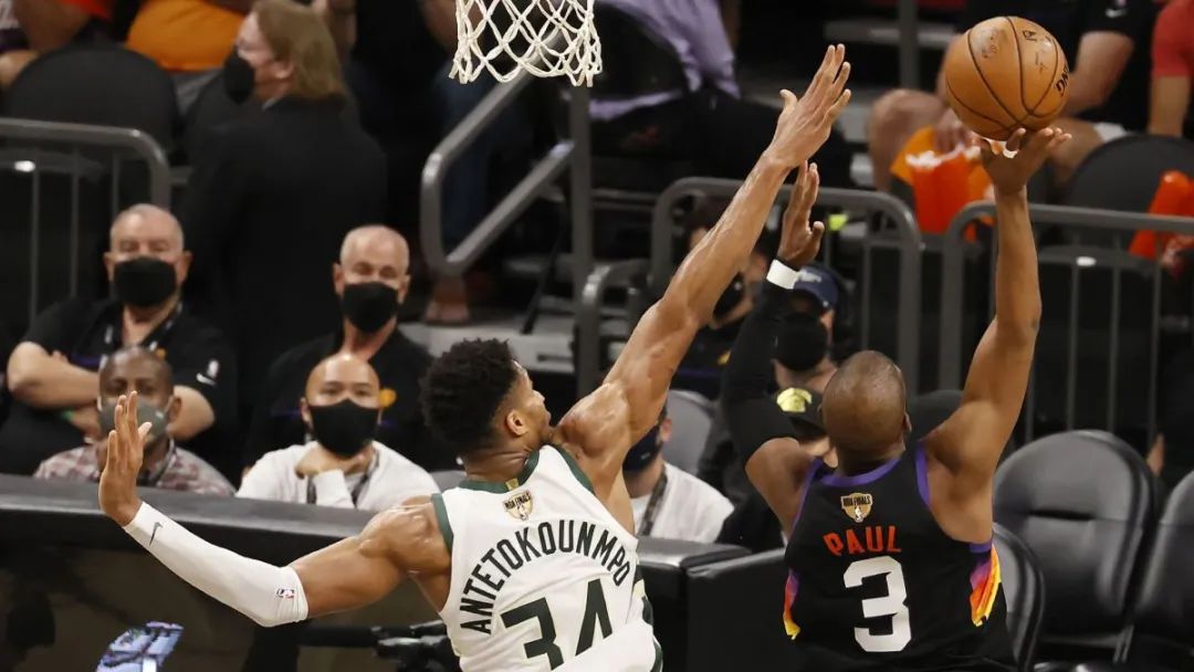 **第二,太陽的中距離命中率輸給了雄鹿。**雄鹿全場中距離40中21,太陽41中16,雄鹿靠這招多得了10分。太陽是聯盟最強中投大隊之一,保羅和布克是這個領域的頂級存在,雄鹿用這招贏下天王山,真是殺人誅心。