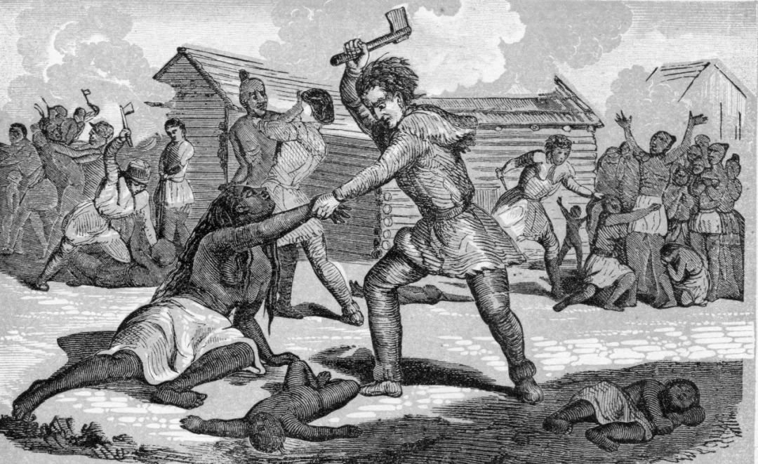 ▲1782年,一夥美國民兵殺害了96名基督教萊納佩人,製造了格納登胡滕大屠殺。一個世紀後,西奧多・羅斯福稱這一慘案為“美國西部拓荒時代不會隨時間消逝的污點”。