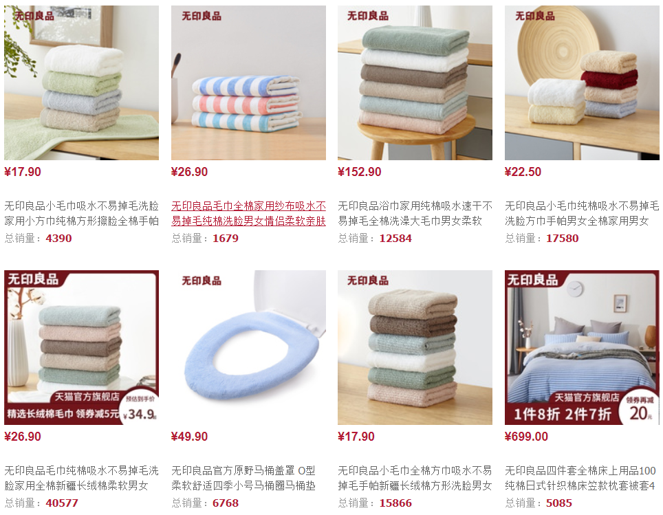 2. 日本無印良品在布、毛巾、牀單等商品上,不能用“無印良品”商標,只能用“MUJI”。至今還是這樣。