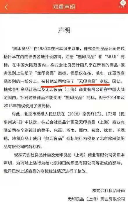 萬萬沒想到,因為最後那個聲明,北京無印良品又把日本無印良品告了!