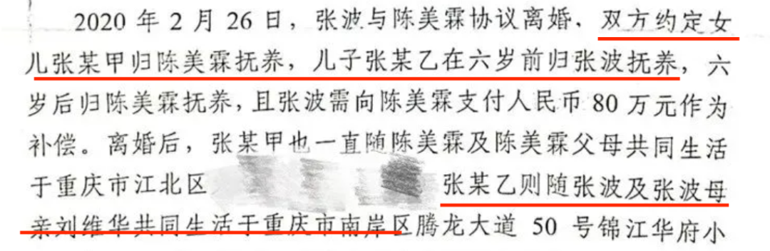 兩人約定,等到兒子6歲時再還給陳美霖。張波需要分八年支付孩子的撫養費80萬。