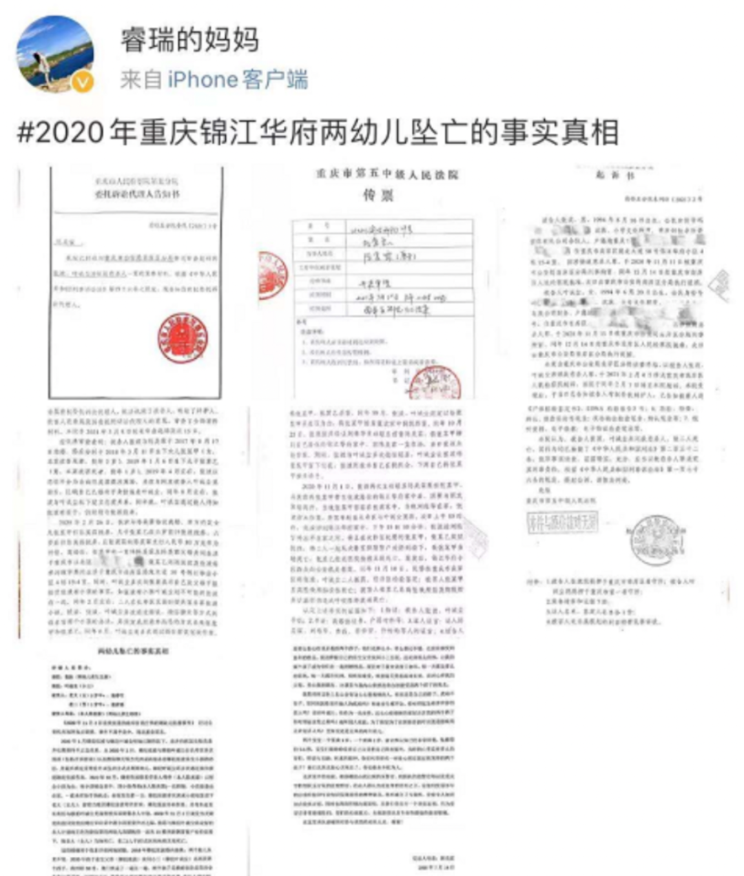 直到昨天,兩個孩子的母親曬出了法院的傳票和起訴書,揭露了兩名幼兒墜樓的真相——