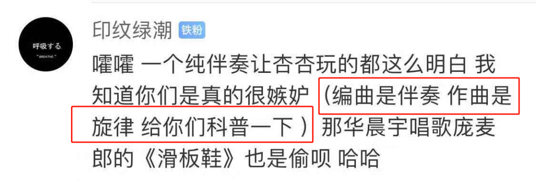 而他的粉絲在勸大家上百度搜一搜作曲和編曲區別的同時,還不辭幸苦地向大家科普:**《作曲是旋律,編曲是伴奏》**這一足以改變音樂史的偉大定律。