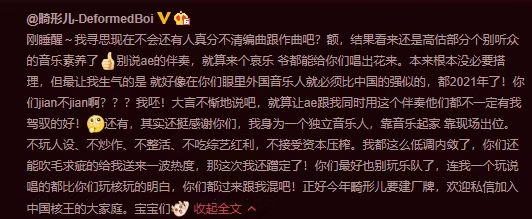 面對大家的指責,當事人畸形兒團體進行了回擊,表示攻擊他的人都是“分不清作曲與編曲”。