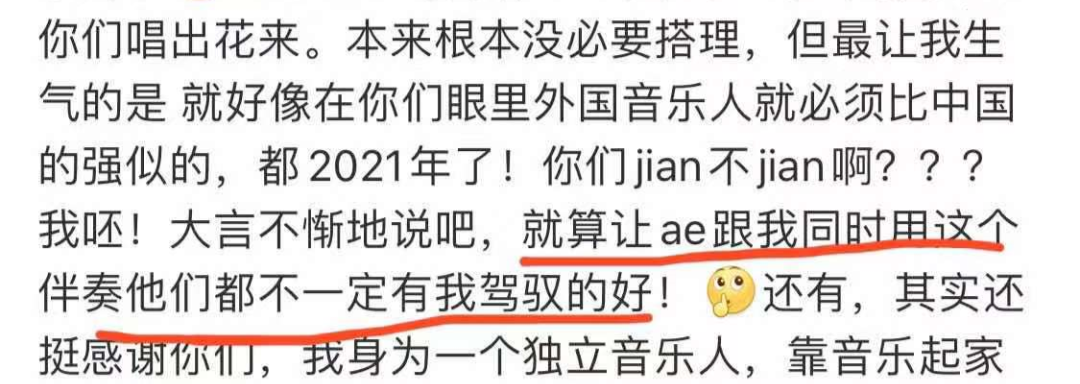 “就算讓ae跟我同時用這個伴奏,他們都不一定有我駕馭的好!”