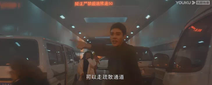為 了突出兩位主角,整場戲弱化了交警部門, 在消防車到達隧道口時,才出現了交警 的背影。