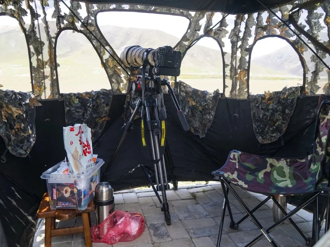 新的機位靠近道路,我的帳篷無意中成為了一個景點。隨着貓盟大部隊隊員們的陸續抵達,隱蔽帳篷也成了參觀甚至留影的打卡地,我順勢給帳篷起了一個名號:“王先生咖啡屋”。
