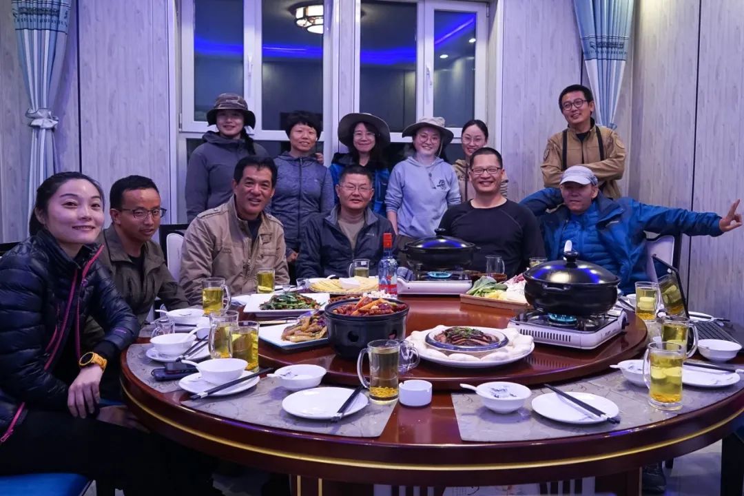 此時只聽到帳篷內傳來Kim含糊不清的聲音:“我在吃飯”。然後她一邊抹着嘴,一邊出來完成了合影。