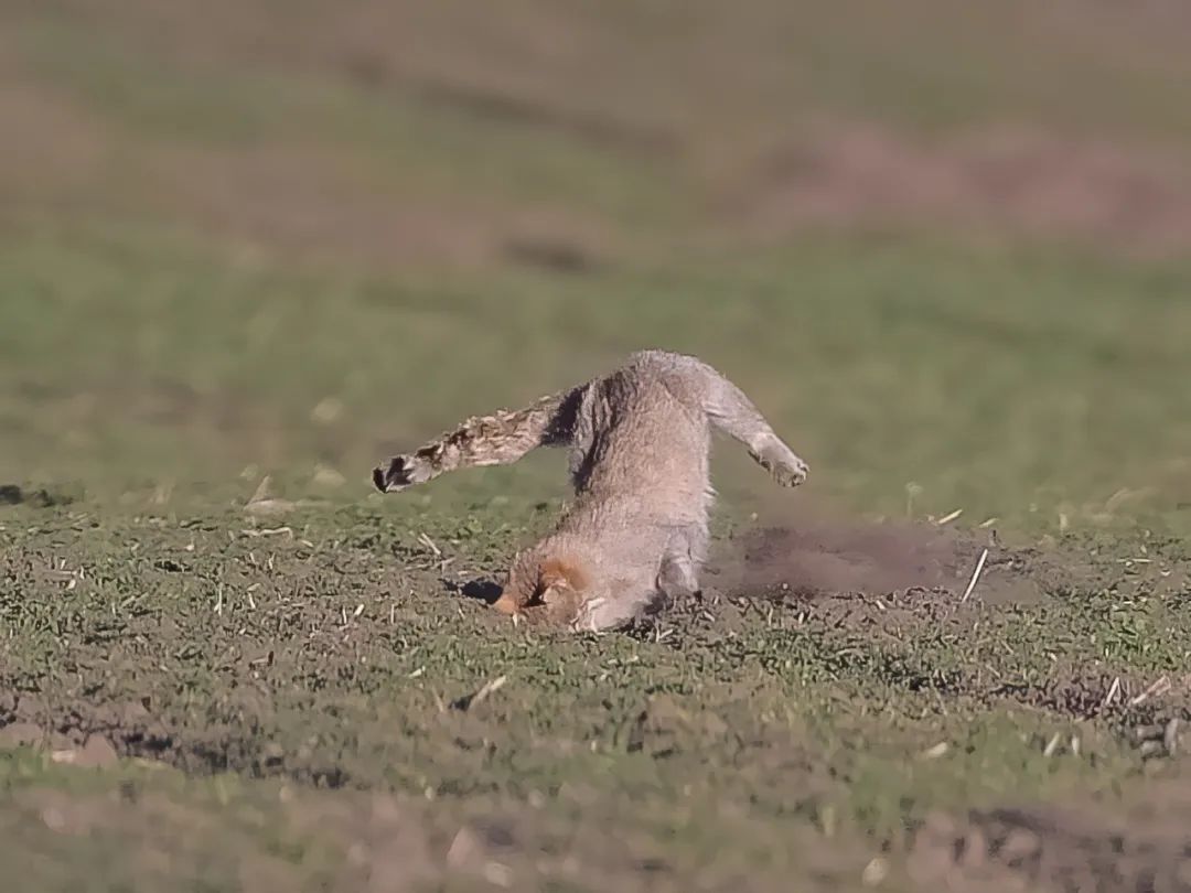 很快,文丑就抓到了一隻肥碩的鼢鼠。但捕食的過程被土坡遮擋了,好在它捕食成功後,叼着鼢鼠面對鏡頭來了一個亮相。