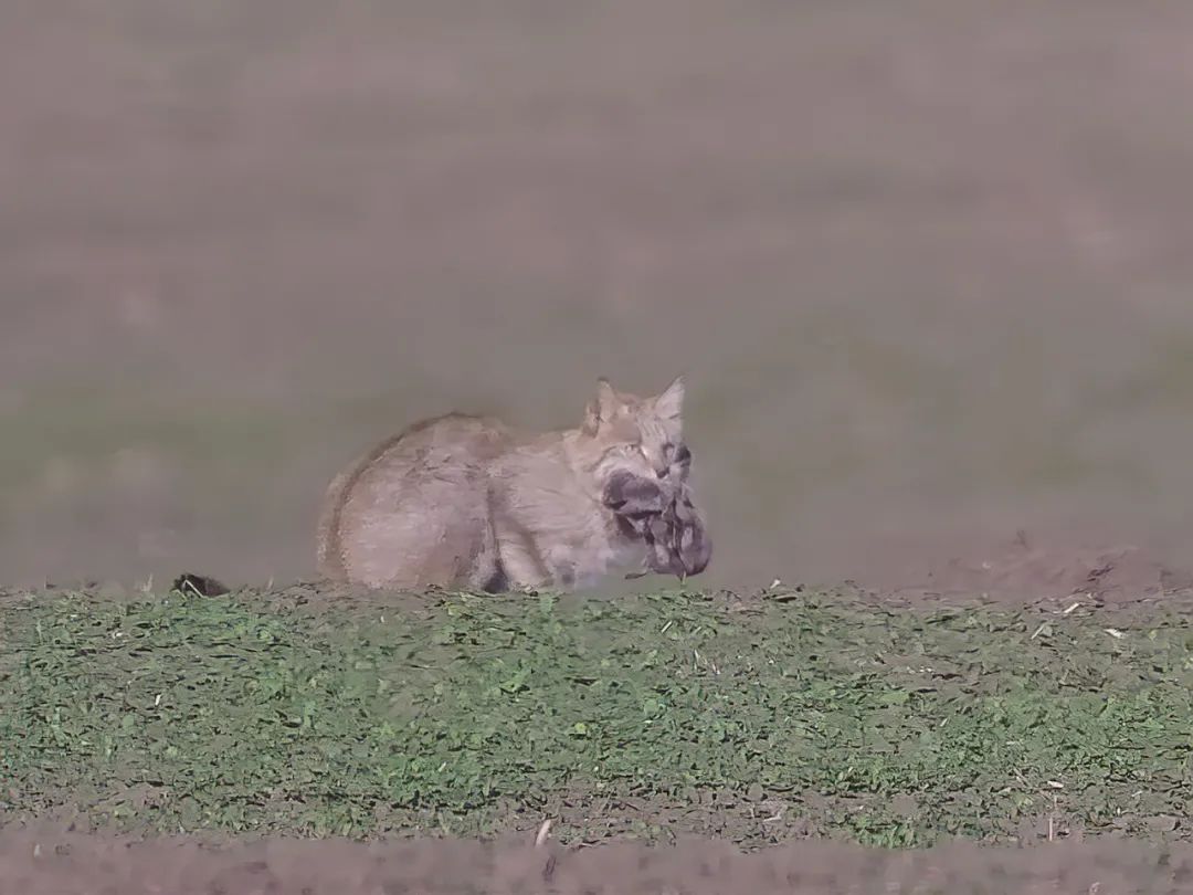 然而出人意料的是,在回到賓館後,與我們住同一賓館的拍鳥團告訴我們,他們之後在這片地的西部又見到了一隻貓,並拍到了它的捕食過程!