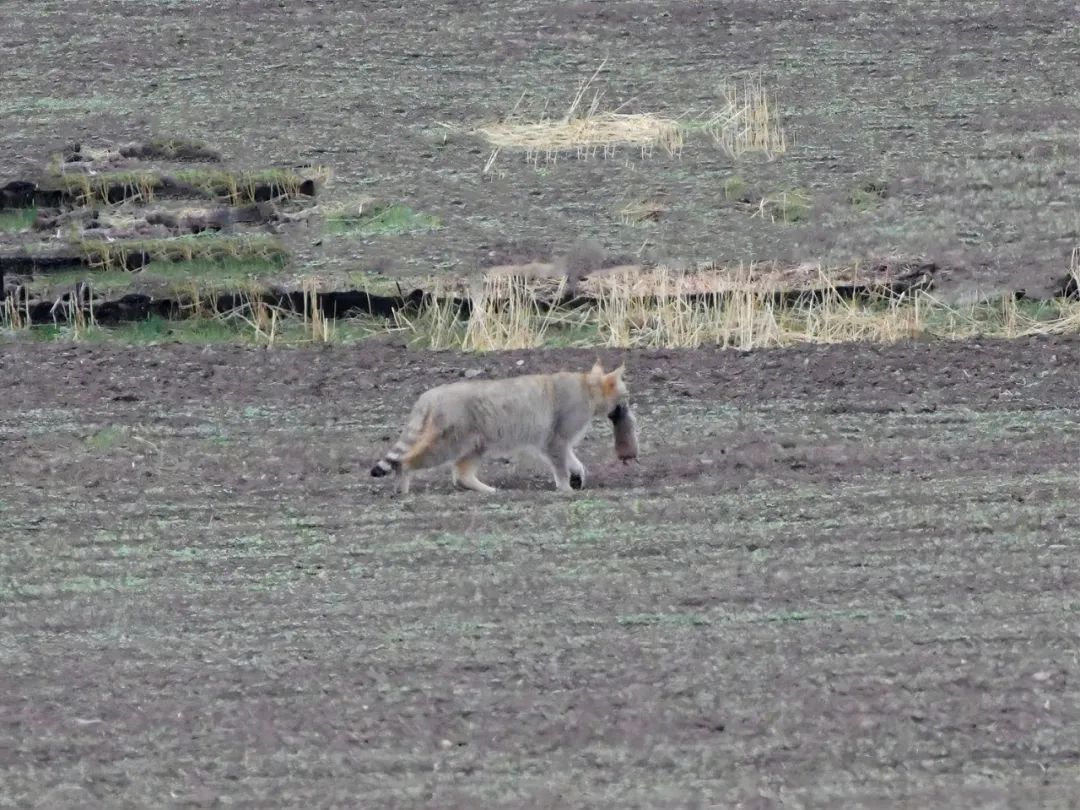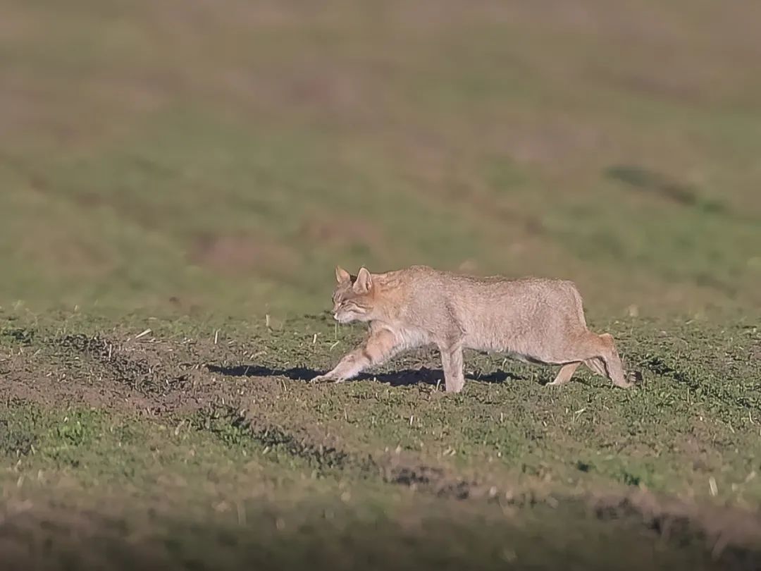 這隻荒漠貓成功地捕獲了一隻鼢鼠,儘管由於機位不佳,我沒能看清和拍攝捕食的過程,但卻看到荒漠貓叼着肥碩的鼢鼠長途跋涉地離開了狩獵場。