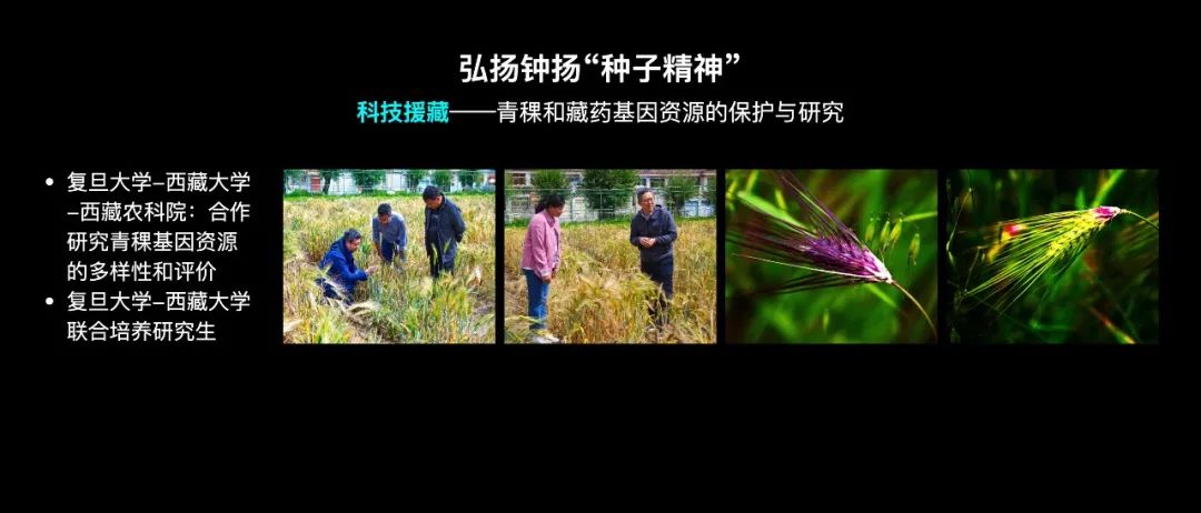 在這樣一個非常重要的時刻,我們就弘揚鍾揚的種子精神,展開了兩個活動。第一個活動叫做**科技援藏,**剛才講到了復旦大學我們的團隊跟西藏大學、西藏農牧大學和農牧研究院共同聯合研究前面提到的一些問題。