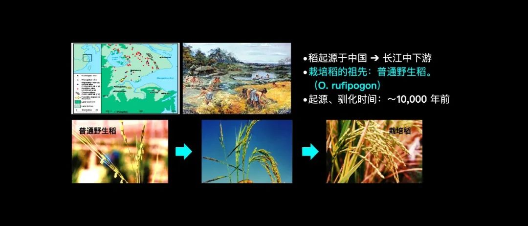 在上海附近,有一個叫河姆渡的地方,這個地方產生了一種非常重要的作物,它就是水稻。水稻是禾本科大家族的一個成員,在水稻屬裏面,水稻屬中間有20多種野生稻。