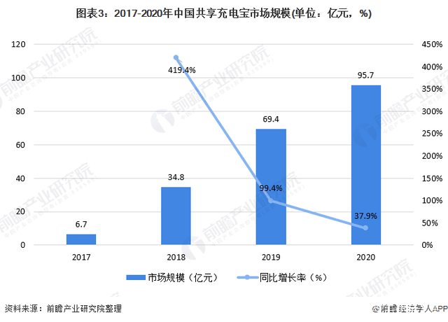 美團首次離場後,共享充電寶行業卻在資本的推動和5G換機潮的契機下,獲得了新一輪的發展。前瞻行業研究院的數據顯示,截至2020年,共享充電寶市場規模達到95.7億元,CR6高達90%以上,頭部梯隊優勢顯著。