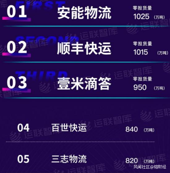 可見,安能及時從快遞行業抽身,是正確的決定。雖然其快遞業務發展平平,但其零擔業務還是不錯的。早在17年,安能的零擔貨運量已是市場第一,並一直保持頭部位置。