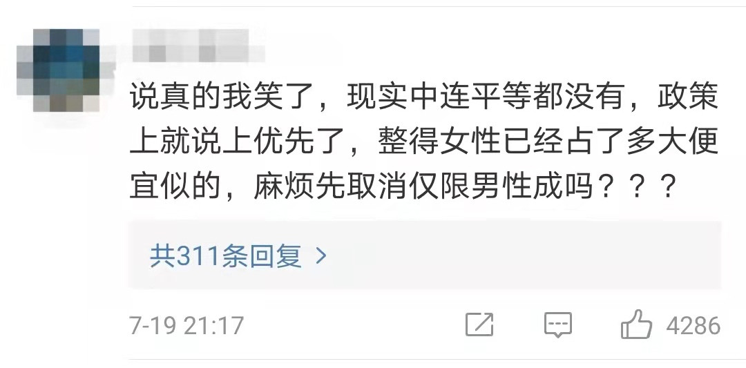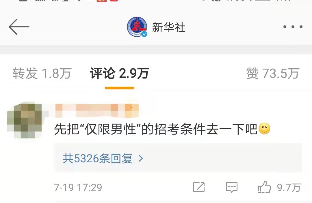 同時,評論區中出現的最多的一種聲音就是要求一些招人單位消去“僅限男性”“適合男性”的條件,給女性工作者同等的機會。