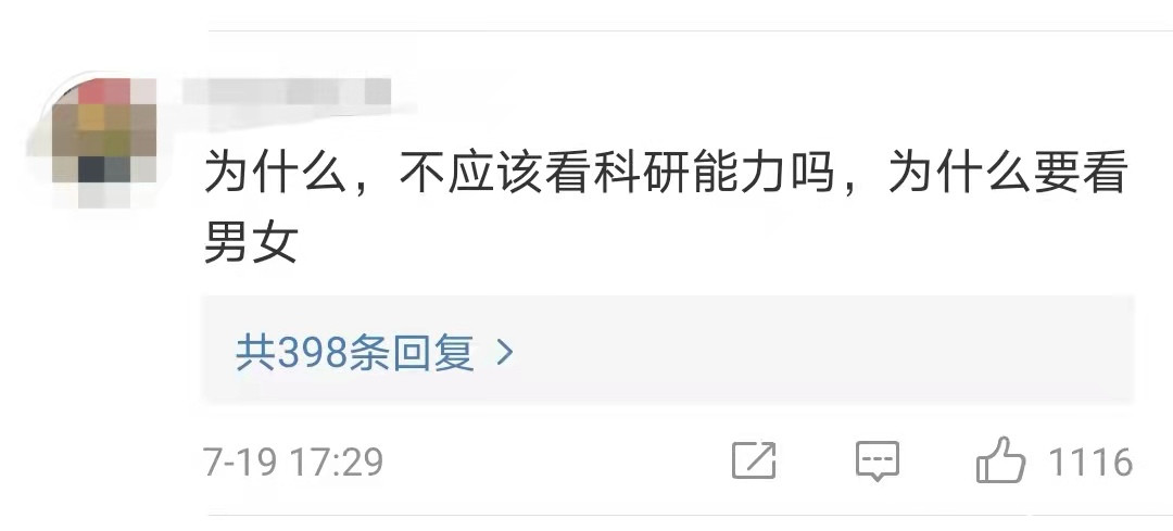 另有一些支持的網友指出,應看重科研能力,而非性別。