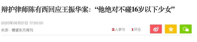而且很巧的,王振華案開庭時,他的律師也是這麼為他辯論的,他向世人宣告,説王振華這個人,從來不碰16歲以下的少女。