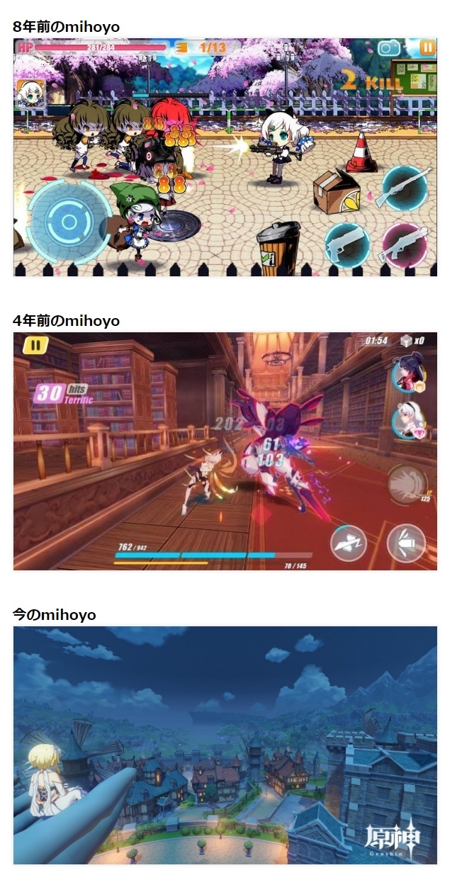 2020年日本網民整理的米哈遊(miHoYo)進化圖,用來對比日本當地“不思進取”的手遊廠商