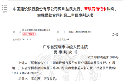 最後,法院判決,建設銀行益民支行應於判決發生法律效力之日起五日內賠償覃女士損失141,441.41元及利息。