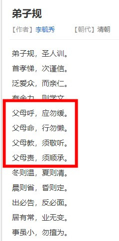 傳統文化,尤其是這種啓蒙內容,兒童科舉教育必修讀物,講的就是一個尊卑有序,長幼有別。再家庭裏,這種尊老的文化是通過身體力行言傳身教完成的。一個成年人會贍養自己的父母,而他的後代看見了也會長大了贍養他,説起來還有點善惡因果的味道。但是在一個公司裏,長幼有序重點不是備份而是職位。全工資最長的就是老闆,當然弟子規這種晚輩要“恭恭敬敬聆聽長輩聖訓”的話老闆喜歡的不得了。