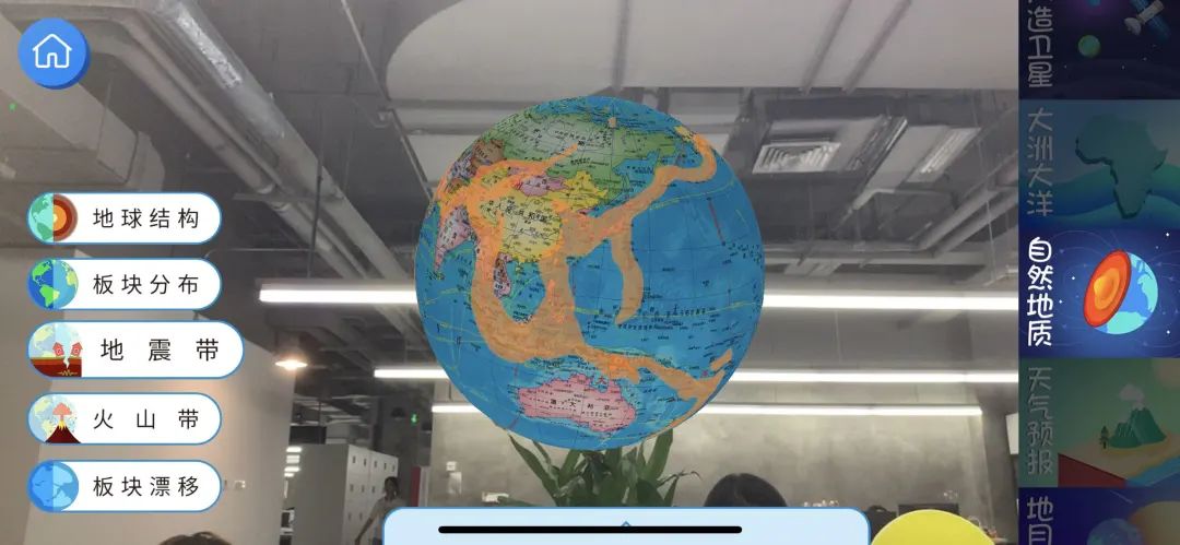 AR的功能比較簡單。通過手機掃描,鏡頭中的地球儀就能顯示出相應內容。不過,從鏡頭中,這些內容並不容易看清楚。因此,當繼續轉動地球儀,手機屏幕中就會顯示出更清晰的內容。而且,並不會隨着鏡頭挪動而改變。