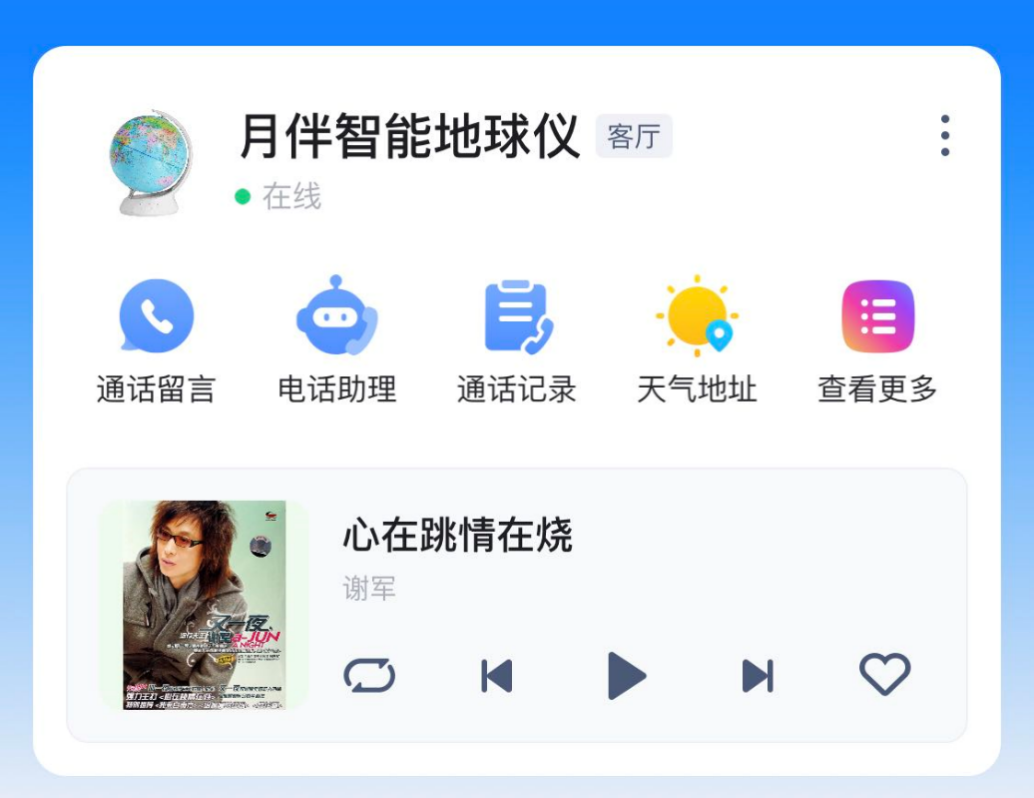 除了這些,天貓精靈的諸多功能也被一股腦“灌”到了月半地球儀上。因此,它可以設置鬧鐘、詢問天氣、播放音樂、講故事、聽兒歌,甚至還可以控制空調、洗衣機、窗簾、插座、掃地機器人、監控攝像頭等等,儼然變成了控制中樞。