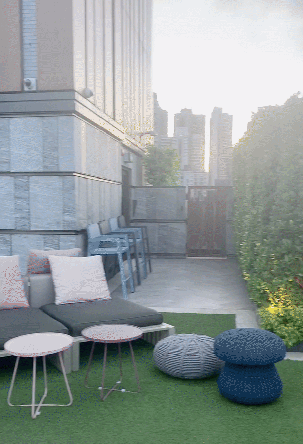 天台上有非常多的躺椅、沙發和靠墊,甚至細心到還設置了USB插口。