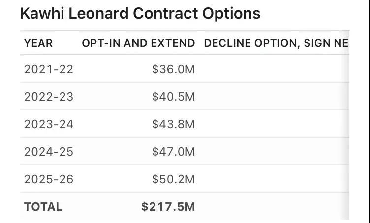萊昂納德剛到快船時,籤的是一份3年1.03億的合同,這份合同讓他在今年可以跳出,成為自由球員。