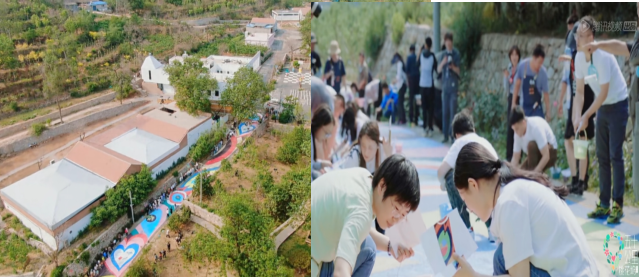 宋丹丹動員當地居民共同參與“幸福大道塗鴉”藝術行動,共同為穀倉到籃球場的道路裝點上幸福的色彩。