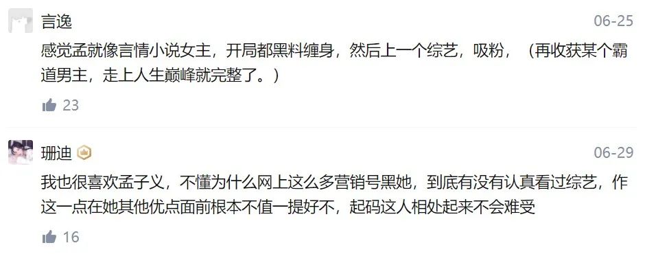 但隨着節目發展,她的“情商低”被“自黑”揭過,原本大黑孟子義的觀眾紛紛改觀,進而吹捧孟姐好可愛。