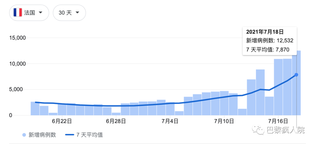 眼看着這個曲線從上週就開始往上拐,昨天的新增病例達到了12532例,是5月中旬以來週日的最高數字!而且新病例中絕大多數都是由高度傳染性的Delta變種引起的。