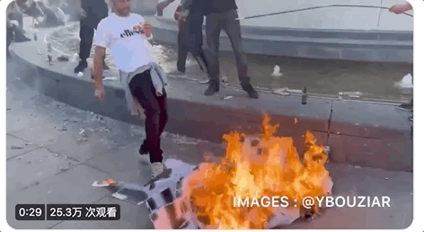 另外,在“革命老區”共和國廣場也不出意外的出現了未經批准的集會,反對者還搞了一個巨大的健康通行證二維碼,當眾燒燬