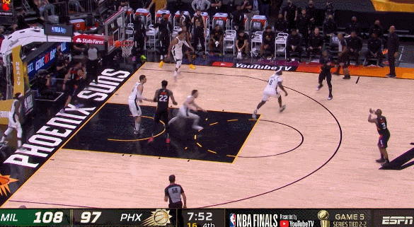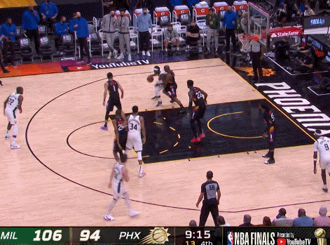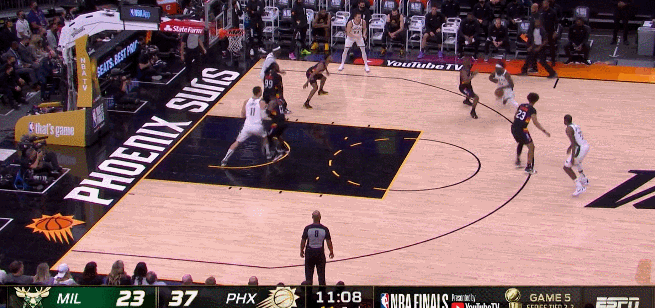 今天開局太陽調了防守,因為上一場雄鹿把比賽簡單化,就打投搶,就打身型優勢,太陽內線幾乎被打穿,還不斷丟前場板讓雄鹿打成二次進攻。