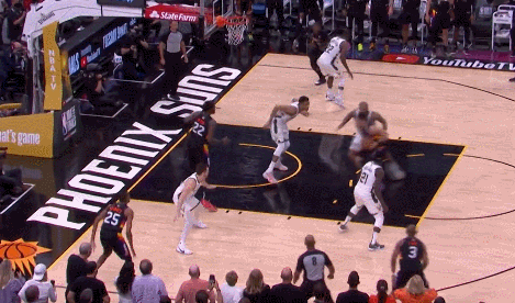 康諾頓一上來,布克就利用換防拔了康諾頓一個,保羅利用換防給艾頓餵了一個籃下的大打小。保羅和布克活了,再加上開局就準的三分,以及布登教練不得已把蒂格拿上場擔任一號位,太陽的進攻自然就順了。