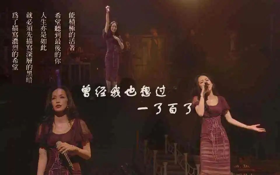 依舊是畫着標誌性的暗色眼影,身着一席紅裙的她,靠跺腳打節拍,靠摸音響確認節奏,聲嘶力竭地演唱了這首《曾經我也想過一了百了》。