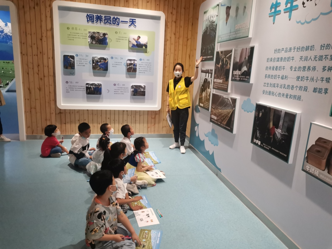 《商界》採訪那天,牧場的天空很清澈,遠處的雪山若隱若現,天山腳下的草原美好得宛若童話世界。樹林裏嘰嘰喳喳的鳥叫蟬鳴聲,犢牛舍裏的犢牛正在圈內跑着,成片的綠植圍繞着好牛奶科普館。