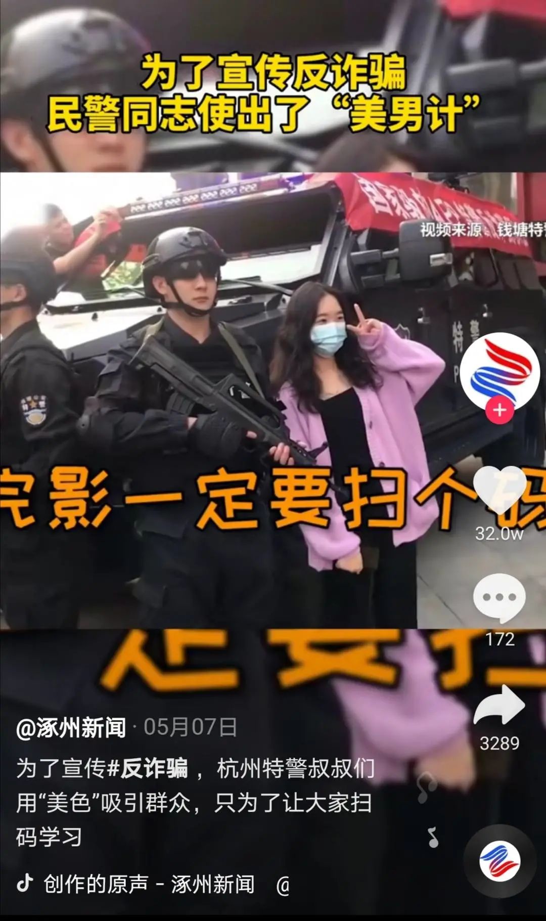 帥哥特警們更是化身“人形佈景”,只為了讓你拿出手機,掃碼學習防騙知識。