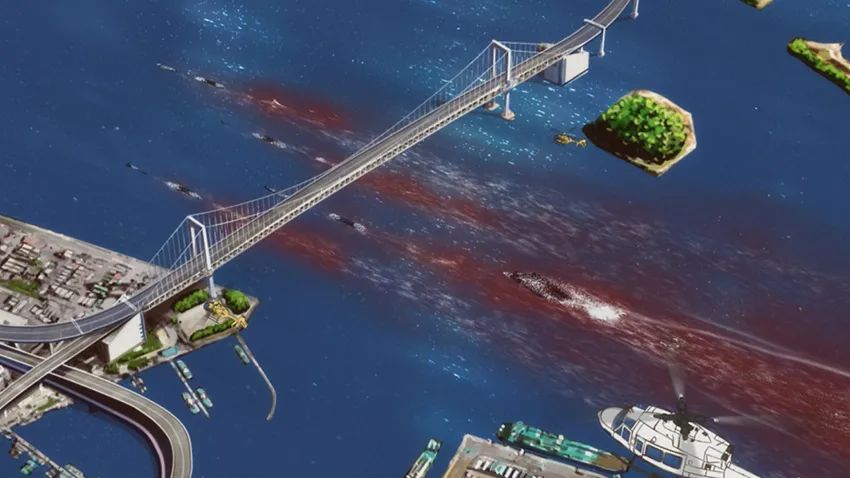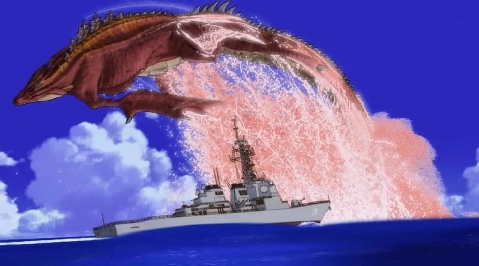 與此同時,太平洋中也出現了鯨魚狀哥斯拉羣落。它們同樣攜帶着紅色的霧氣,並且無差別襲擊擋在自己前進路徑上的所有物體。