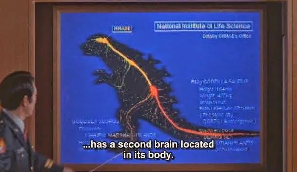 從**《哥斯拉大戰基拉多國王》(1991)**開始,哥斯拉進化成為腰部擁有一個被稱作“第二腦”的神經節。