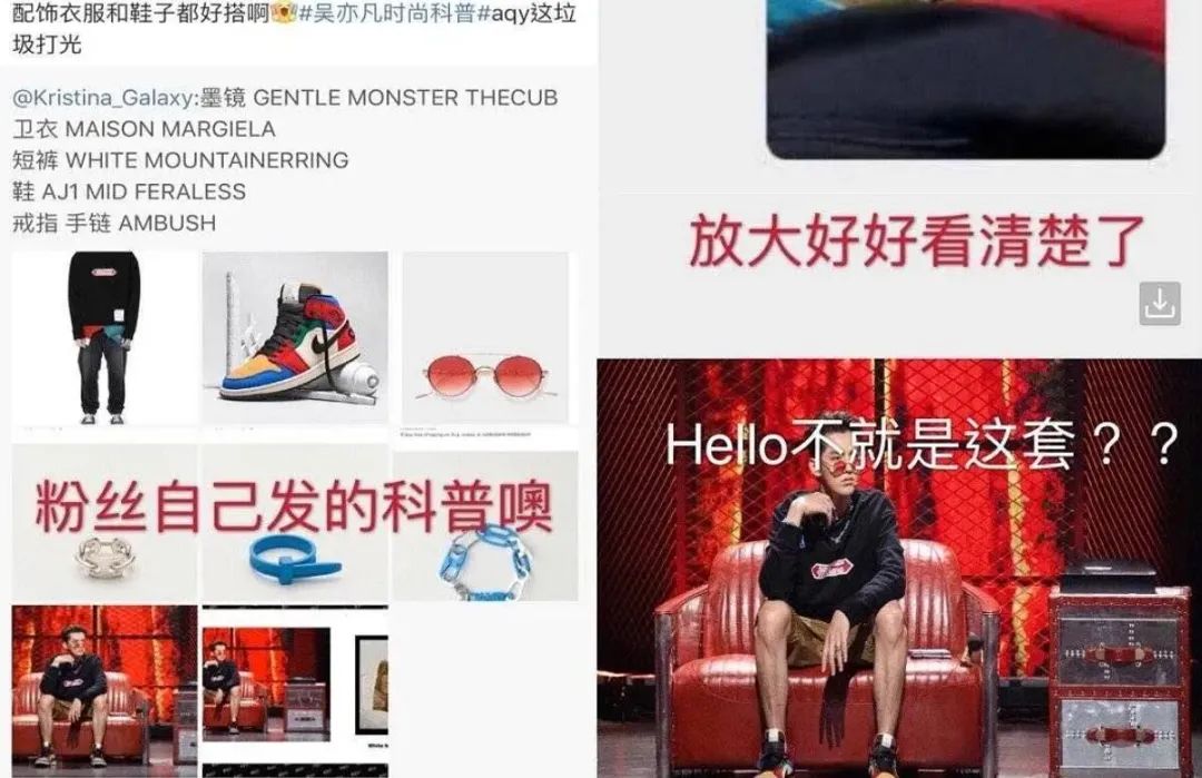 而且張丹三的聊天記錄裏,能實錘是吳亦凡的還屬吳給他發了一張當天錄製的look圖,和那天新説唱錄製的裝扮一模一樣。