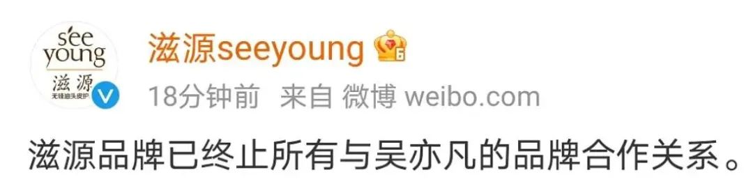 到今天下午,吳亦凡的內地所有商務合作都已經被解約。