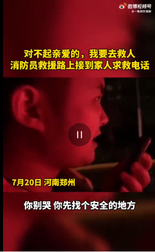 北京青年報報道,中原區一名消防員在救援途中接到家人求助電話,只能指導家裏人自救,然後繼續執行救援任務。
